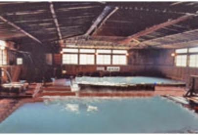 内風呂の中では、青森県八甲田山中の海抜900mにある酸ヶ湯温泉です。古くからの湯治場で、国民保養温泉地第一号に指定された温泉です。強酸性で白濁の含硫黄泉です。浴室への入口を入ってびっくりするのは、プールと見まがうほどの広い浴槽です。しかも、その向こうの奥の方にも大きな浴槽が見えます。聞けばこの広さは160畳もあるとのこと。